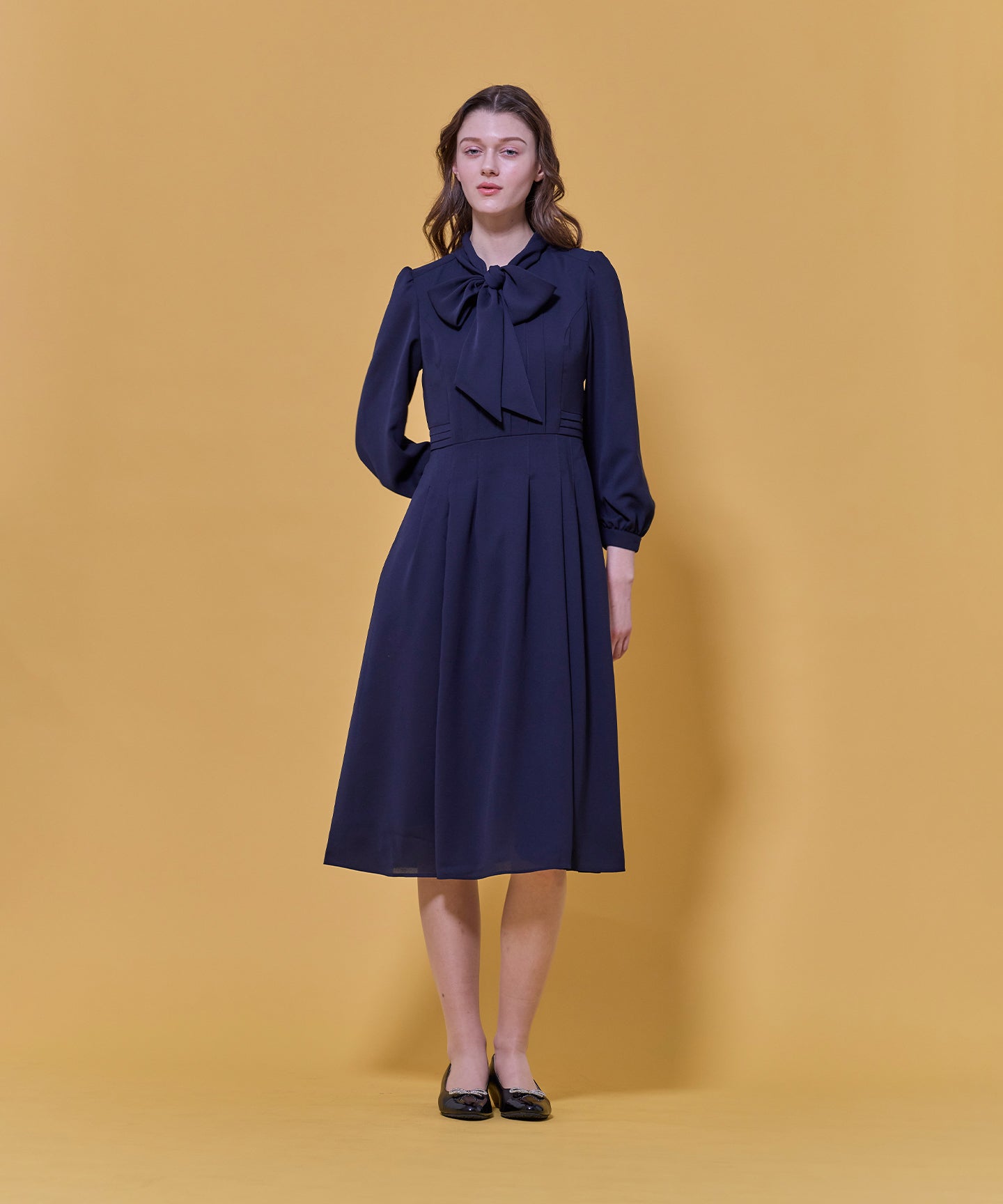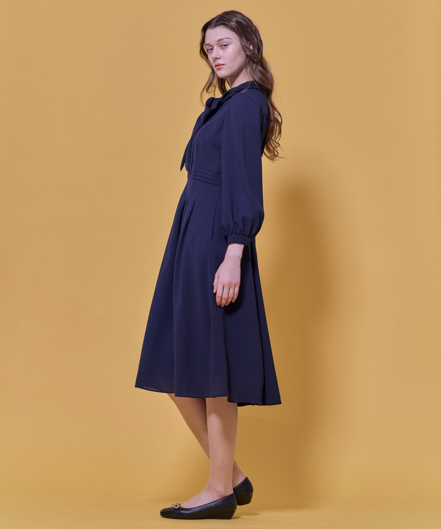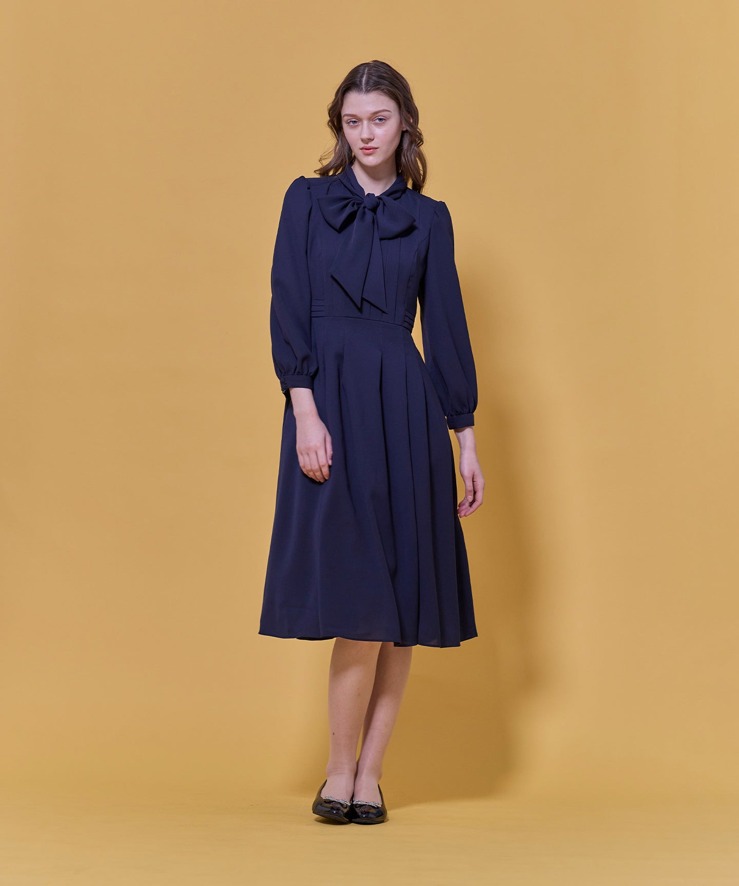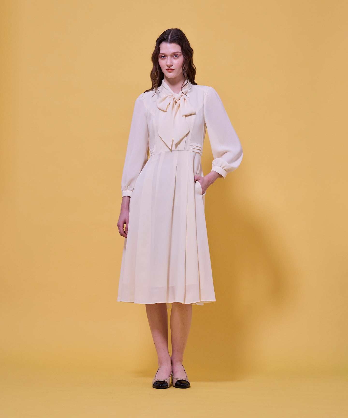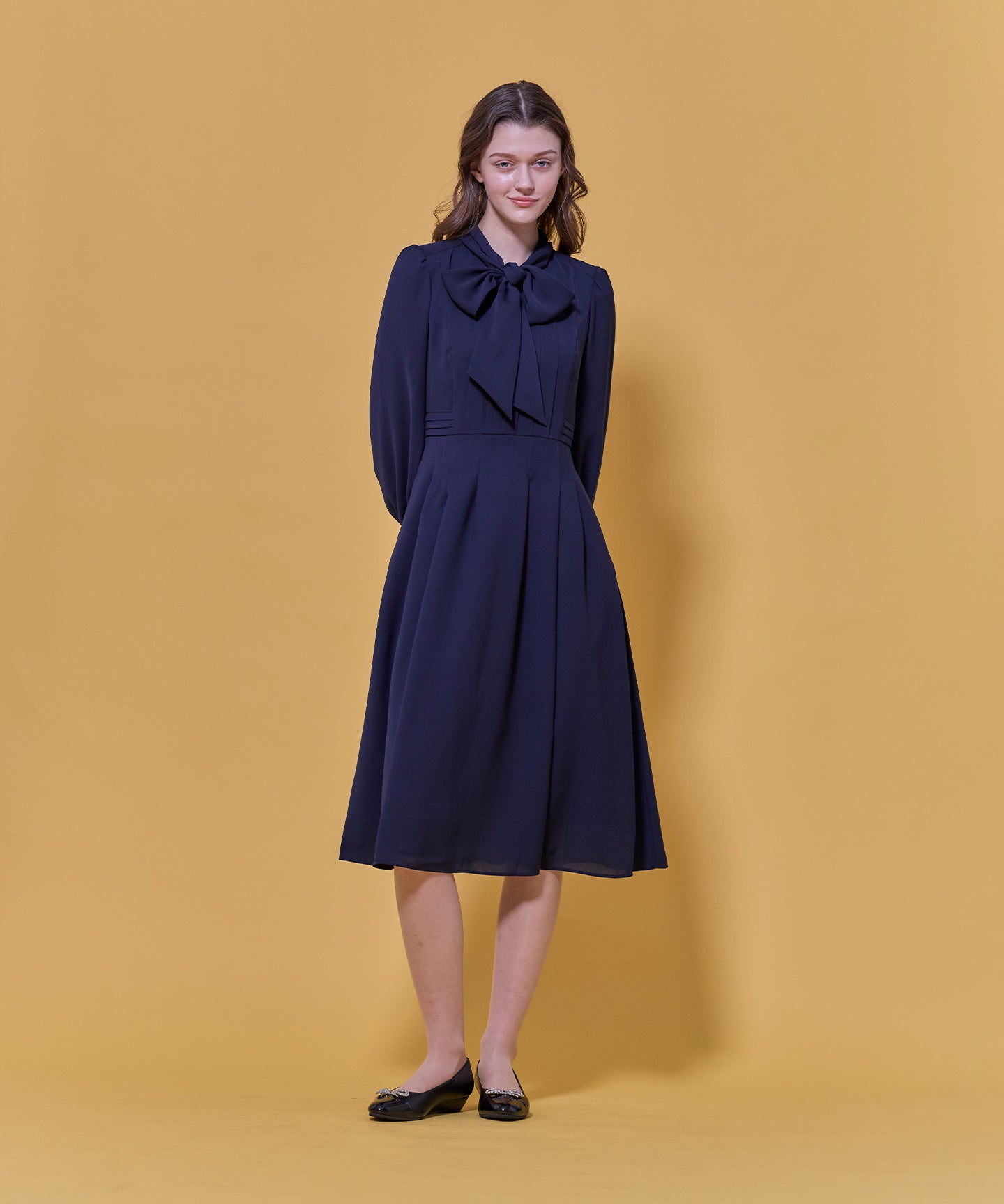 パウダリーな質感が女性らしい軽やかなシャツドレス。定番カラーのネイビーに加えて、今年は新色のミントとクリームイエローが登場。 ボウタイで華やかな印象を演出してくれます。フィット&フレア、タックやギャザーのディティールがTOCCAらしく可憐な印象です。 透け感の少ない素材なので、セレモニーや、オケージョンシーンにも上品に着こなせます。1枚での着用はもちろん、ジャケットやカーディガンとのコーディネートもお楽しみください。同素材でお作りしたブラウスもございます。