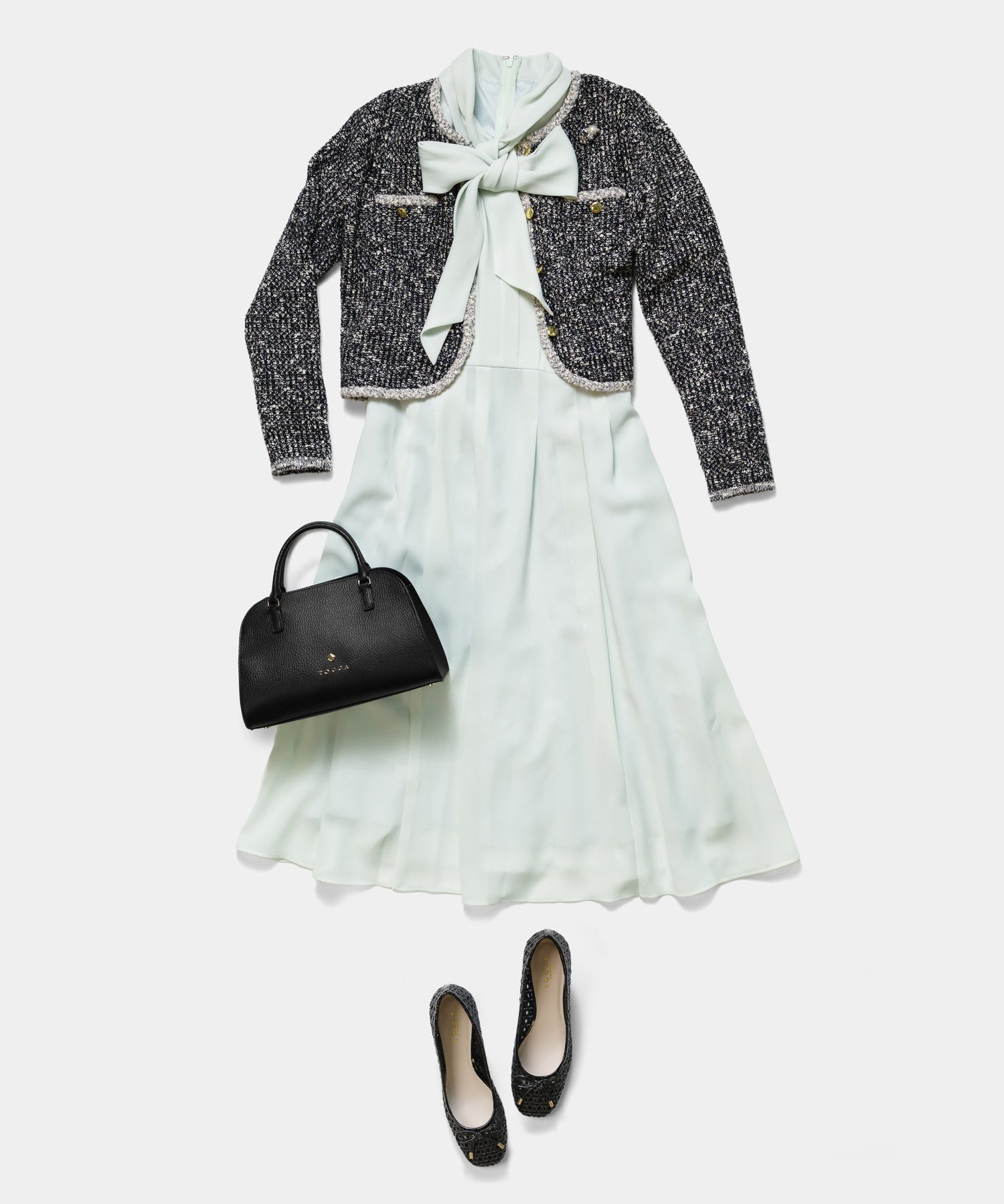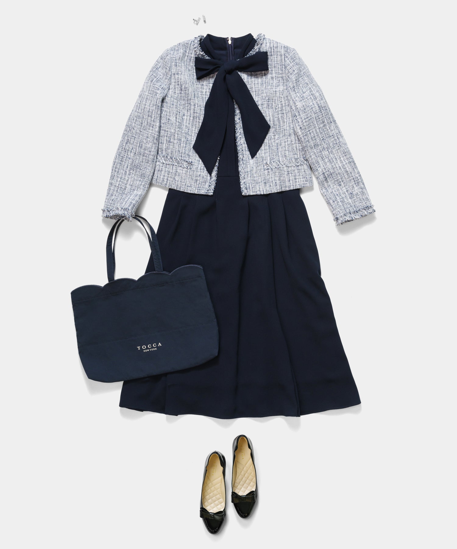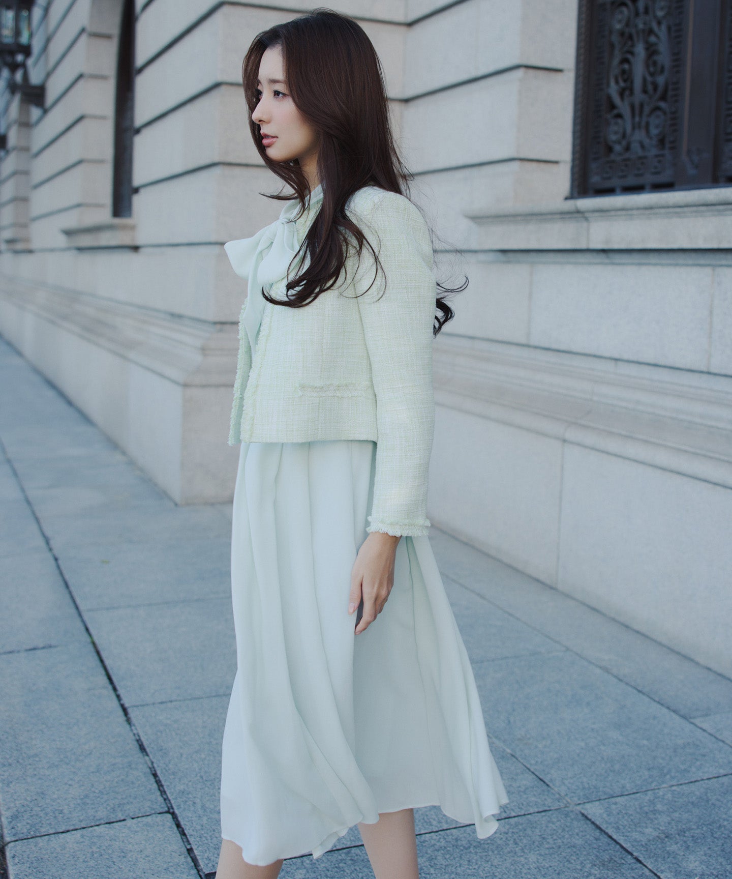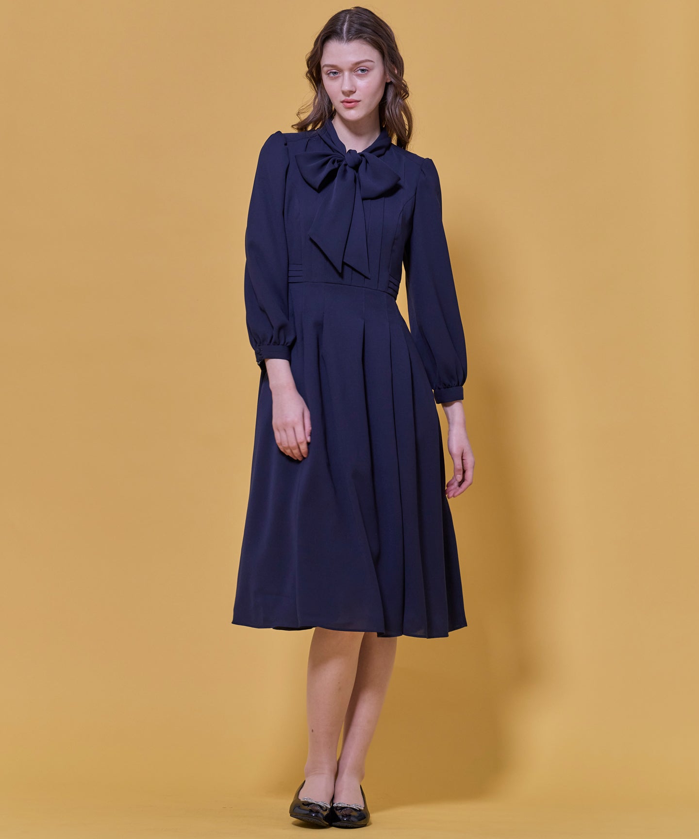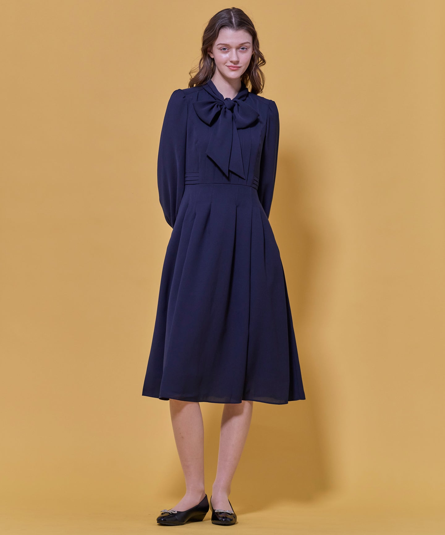 パウダリーな質感が女性らしい軽やかなシャツドレス。定番カラーのネイビーに加えて、今年は新色のミントとクリームイエローが登場。 ボウタイで華やかな印象を演出してくれます。フィット&フレア、タックやギャザーのディティールがTOCCAらしく可憐な印象です。 透け感の少ない素材なので、セレモニーや、オケージョンシーンにも上品に着こなせます。1枚での着用はもちろん、ジャケットやカーディガンとのコーディネートもお楽しみください。同素材でお作りしたブラウスもございます。