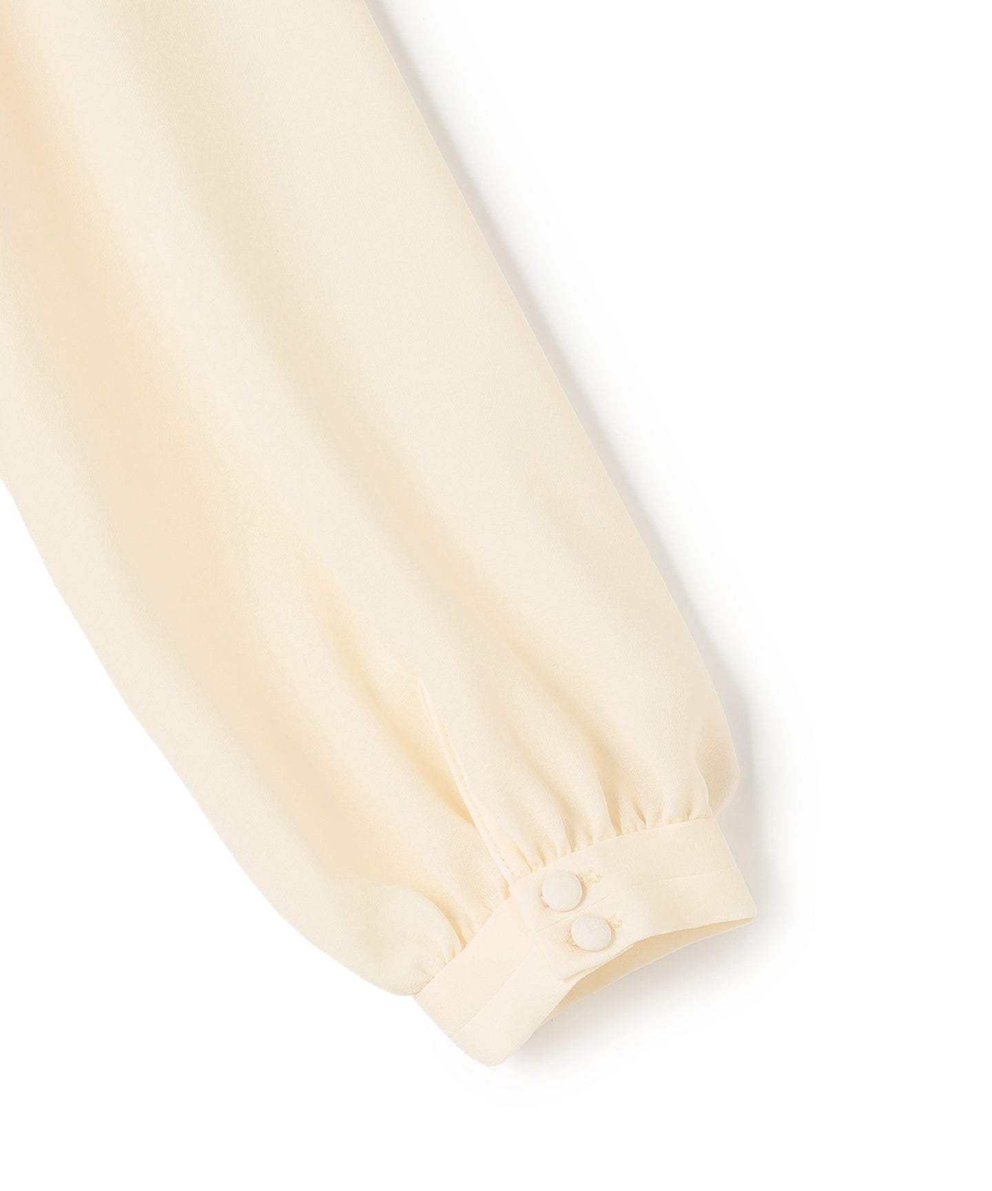 パウダリーな風合いが特徴の糸を使用し、なめらかなタッチと落ち感が特長のジョーゼット素材です。また、イージーケア性に富んだ素材です。