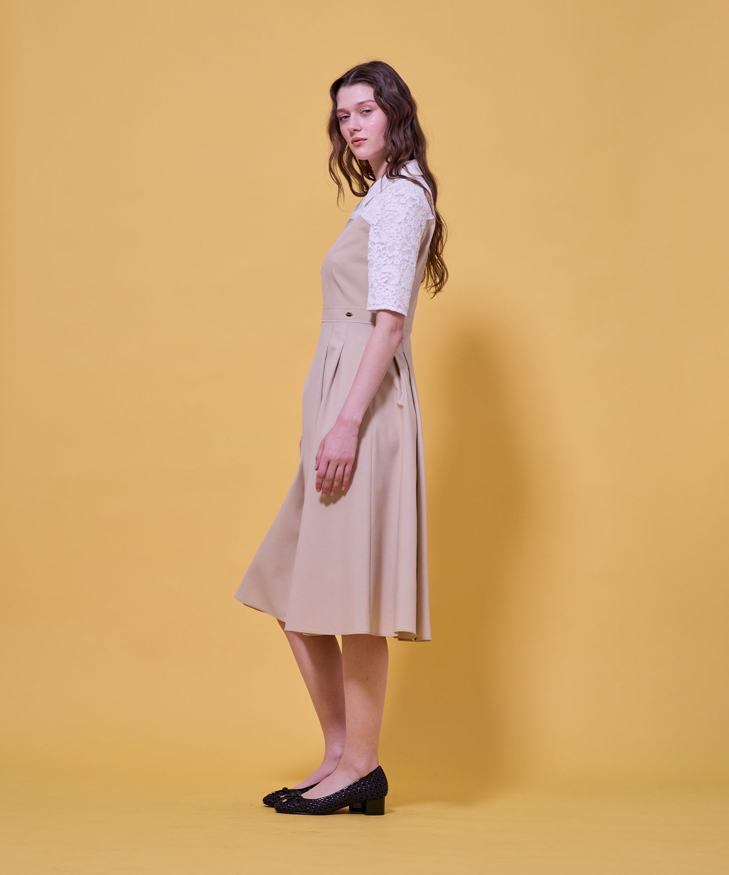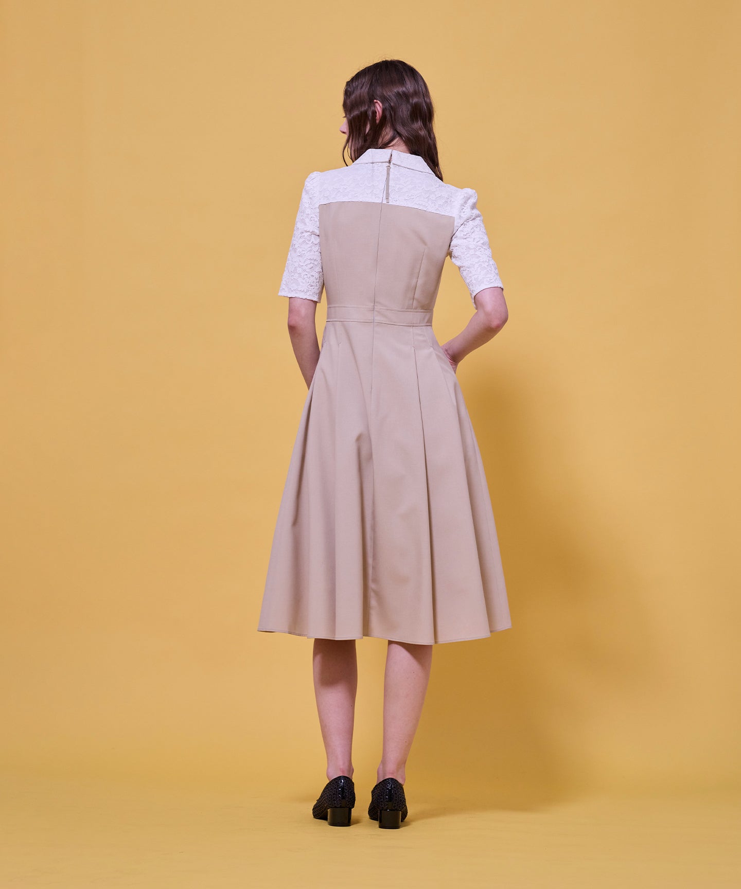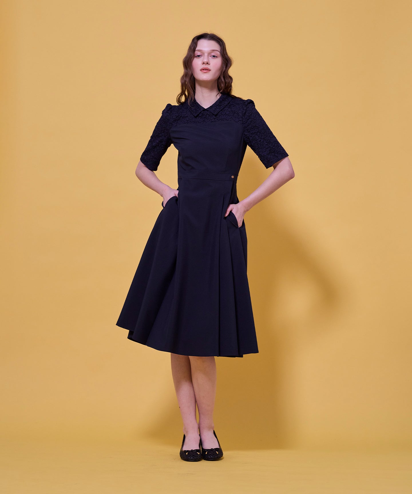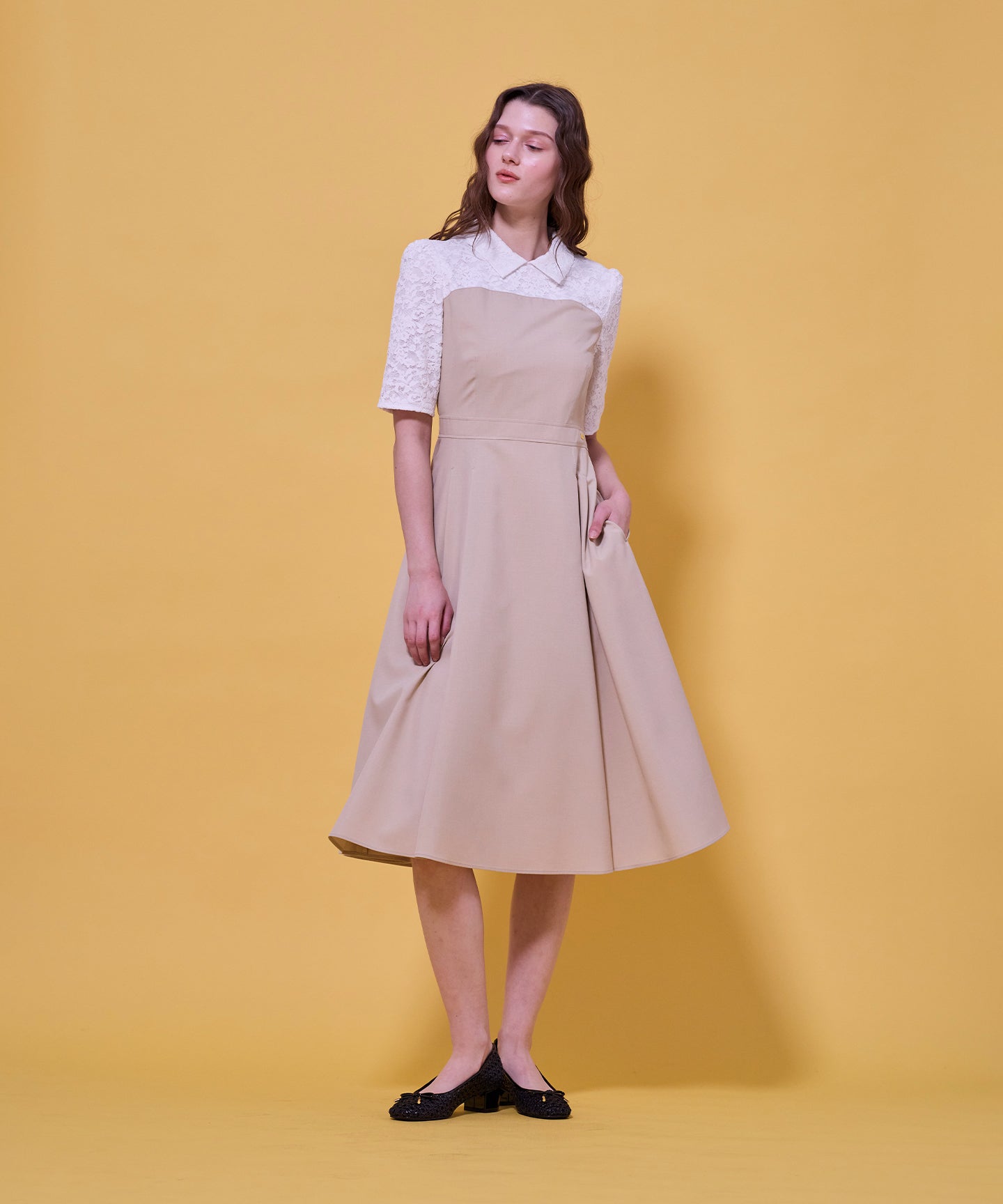 TOCCAで高い人気を誇る「LACE A LA CARTE」を今年バージョンにアップデートしました。ビスチェを着ているようなデザインのドレスは襟つきできちんと感がありながらも、レース使いで華やかさをプラス。襟デザインは小顔効果があり、首周りは程良くゆとりをもたせたサイズ感にしているため、襟付きデザインが苦手な方も着やすくおすすめです。シンプル見えしますが、タックや切り替えを入れて凝った印象に。扱いやすい素材なのでデイリーシーンからお食事会など、きちんとしたシーンにもぴったりです。