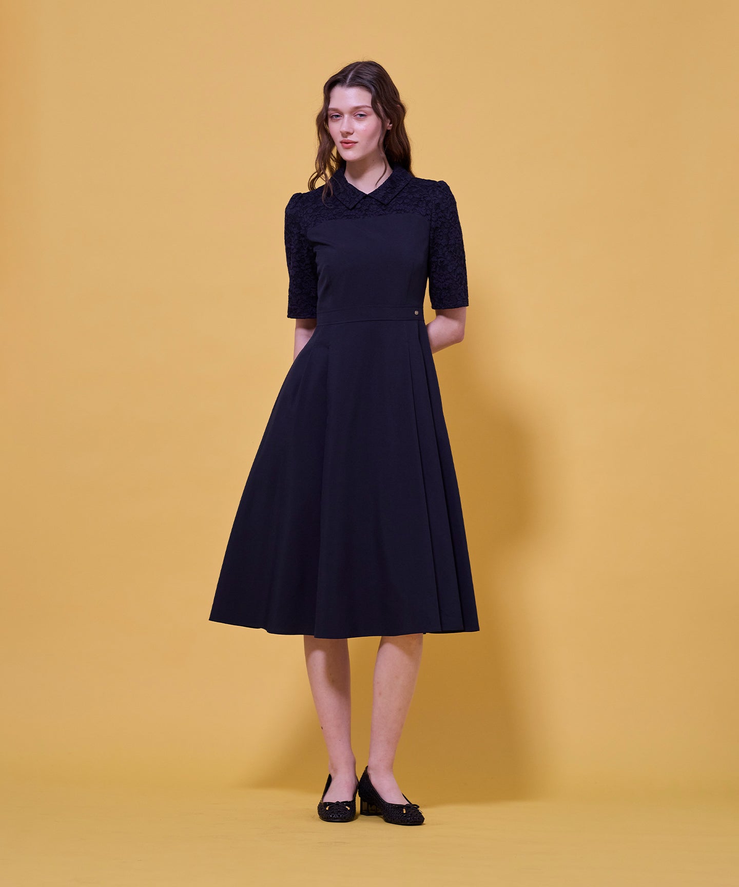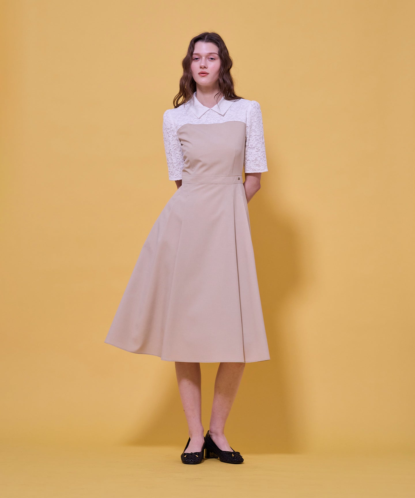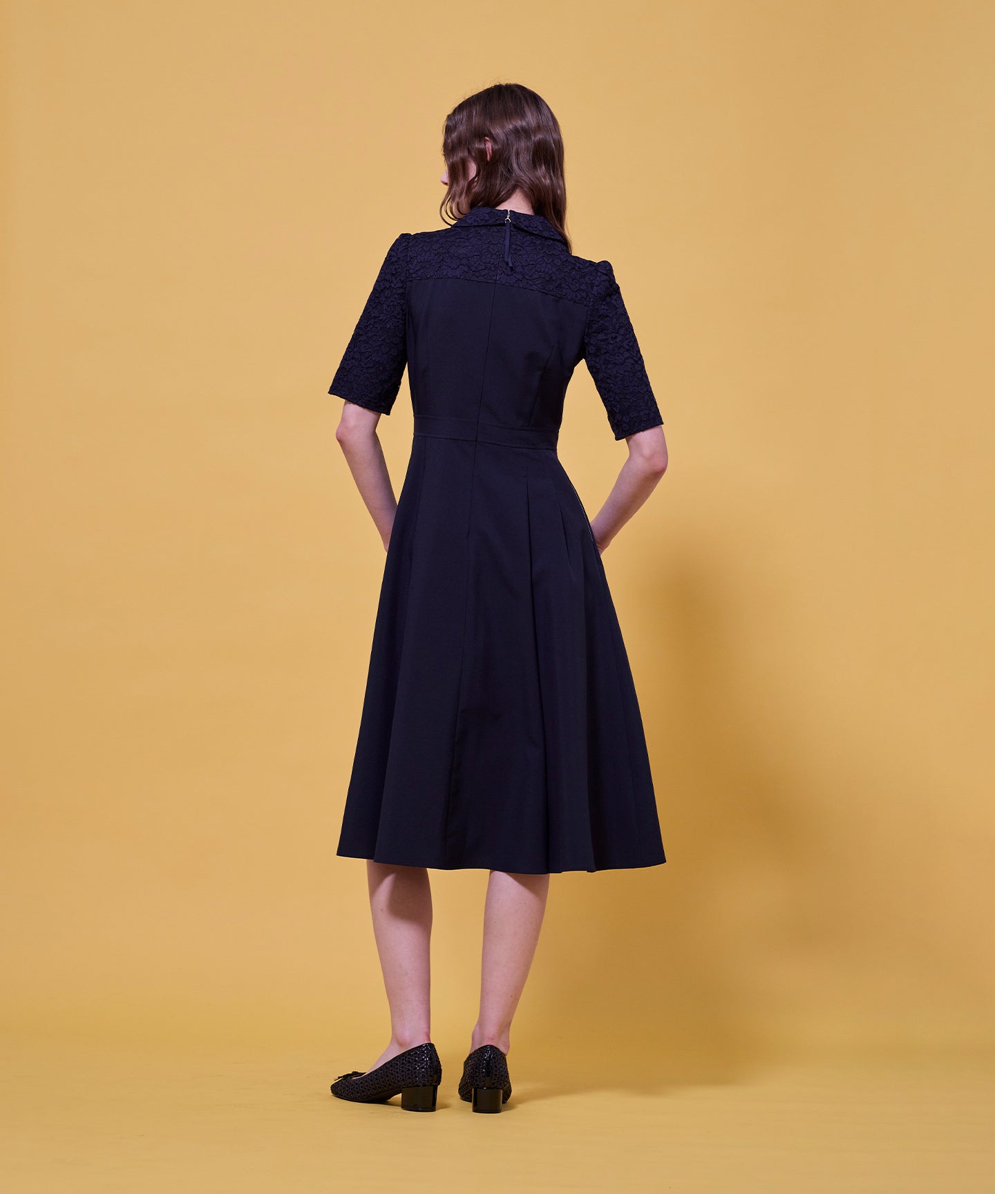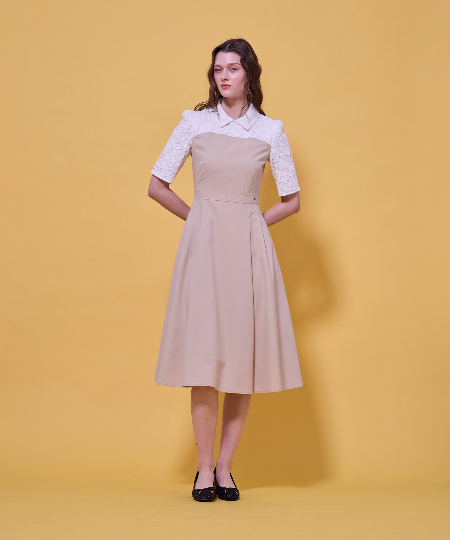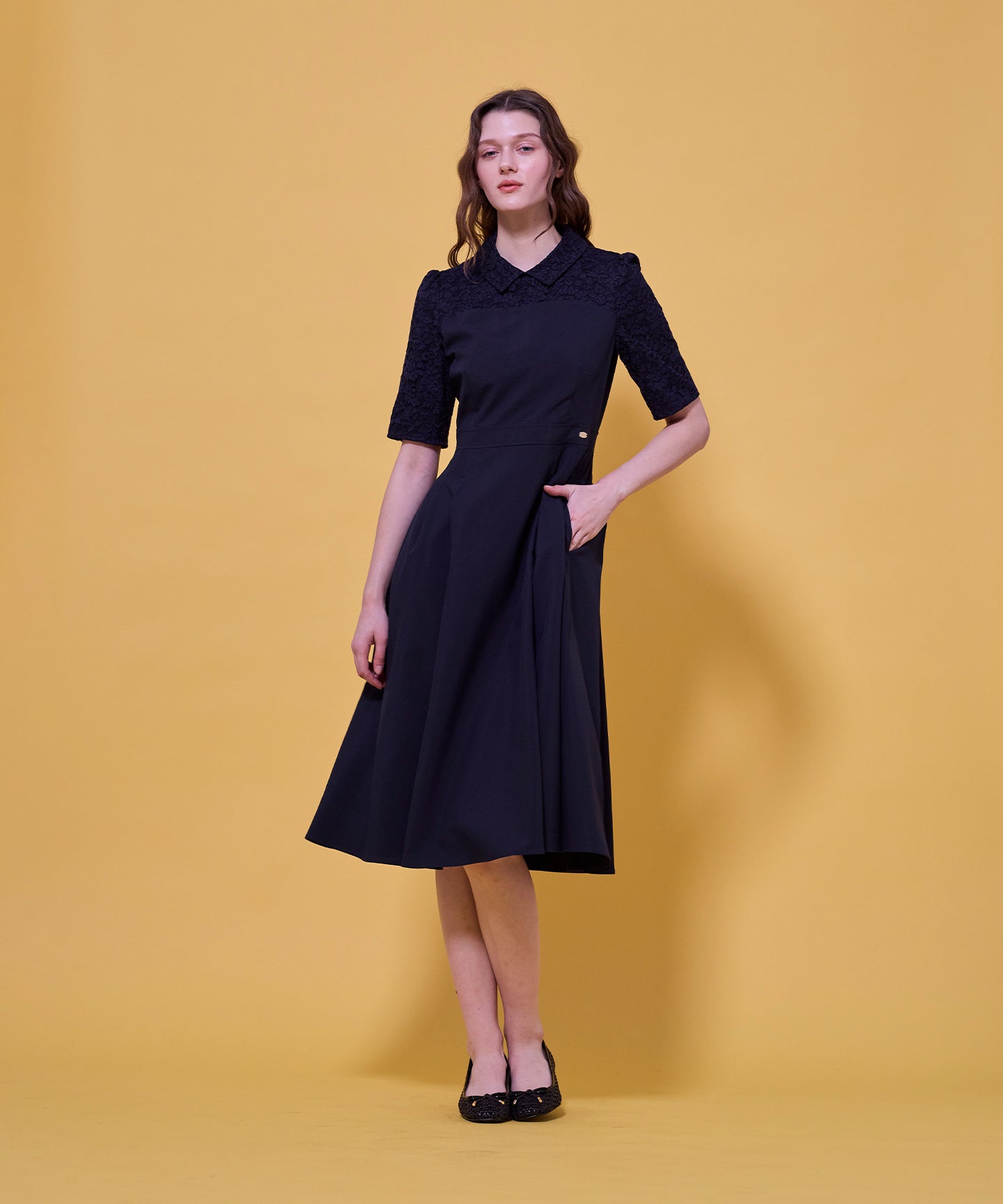 TOCCAで高い人気を誇る「LACE A LA CARTE」を今年バージョンにアップデートしました。ビスチェを着ているようなデザインのドレスは襟つきできちんと感がありながらも、レース使いで華やかさをプラス。襟デザインは小顔効果があり、首周りは程良くゆとりをもたせたサイズ感にしているため、襟付きデザインが苦手な方も着やすくおすすめです。シンプル見えしますが、タックや切り替えを入れて凝った印象に。扱いやすい素材なのでデイリーシーンからお食事会など、きちんとしたシーンにもぴったりです。