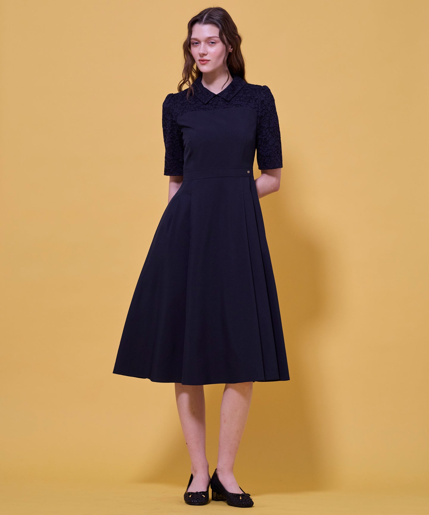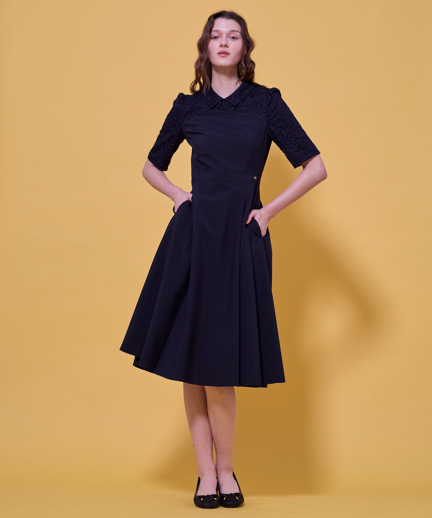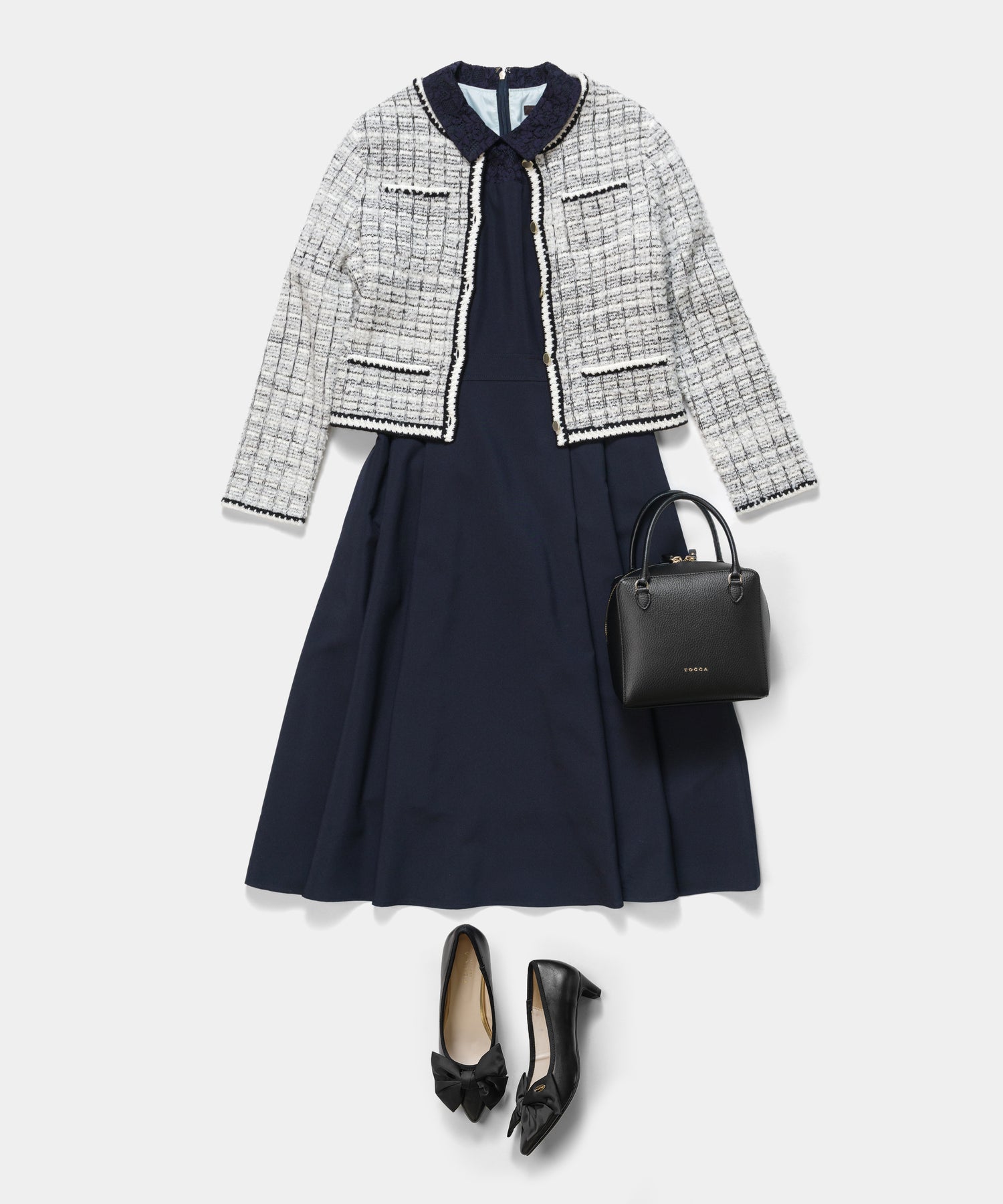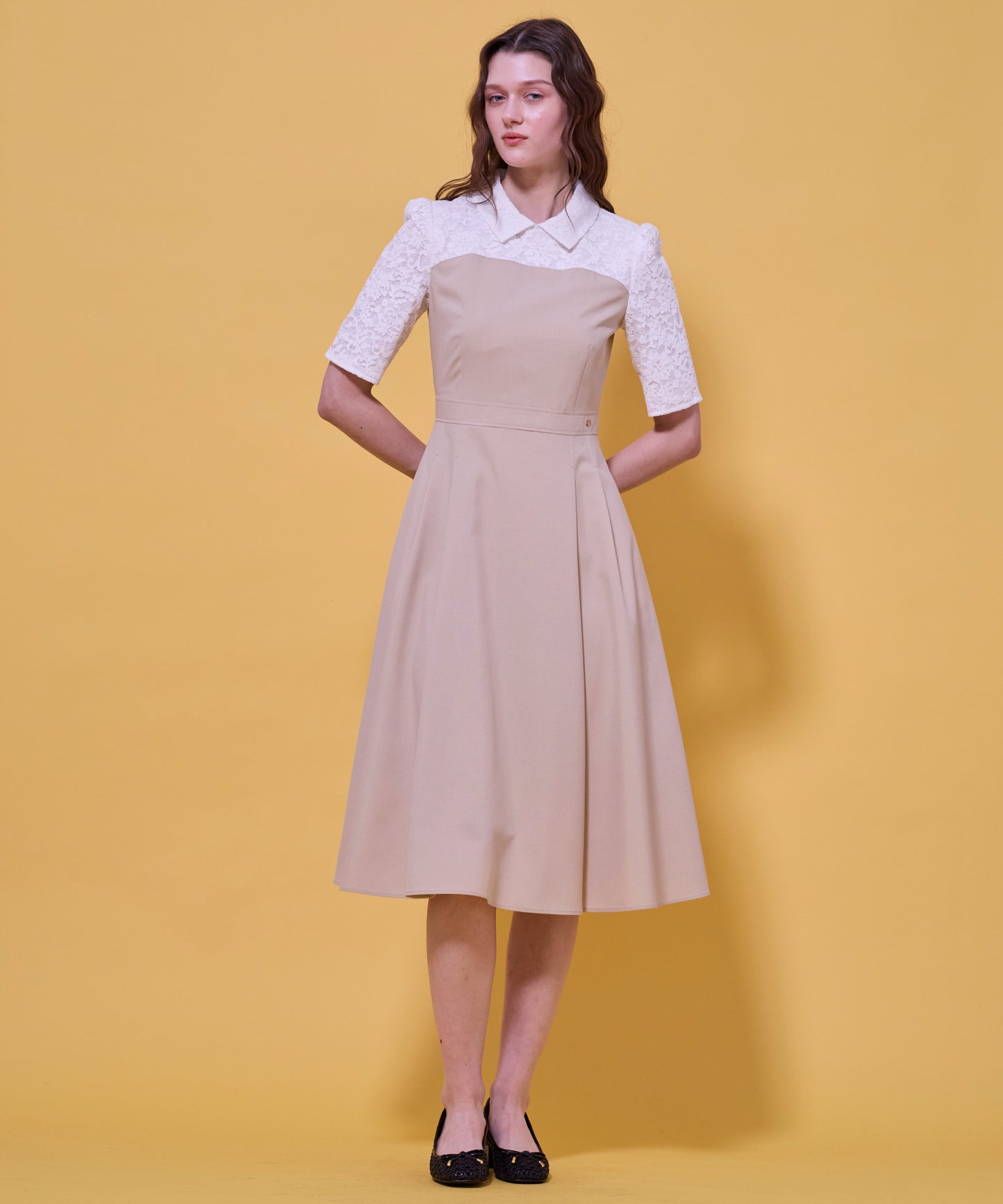 TOCCAで高い人気を誇る「LACE A LA CARTE」を今年バージョンにアップデートしました。ビスチェを着ているようなデザインのドレスは襟つきできちんと感がありながらも、レース使いで華やかさをプラス。襟デザインは小顔効果があり、首周りは程良くゆとりをもたせたサイズ感にしているため、襟付きデザインが苦手な方も着やすくおすすめです。シンプル見えしますが、タックや切り替えを入れて凝った印象に。扱いやすい素材なのでデイリーシーンからお食事会など、きちんとしたシーンにもぴったりです。