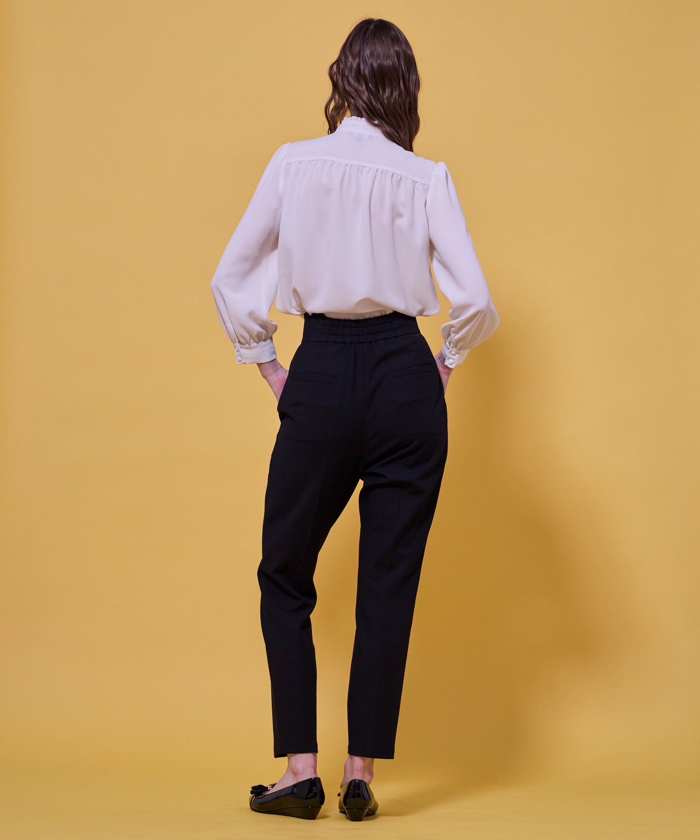 シンプルなシルエットに女性らしいニュアンスを添え、スタイリングにさりげない華やかさをプラスしてくれます。 ハイウエストならではの美しいフィット感が、脚長効果とスタイルアップを叶え、すっきりとした印象に。