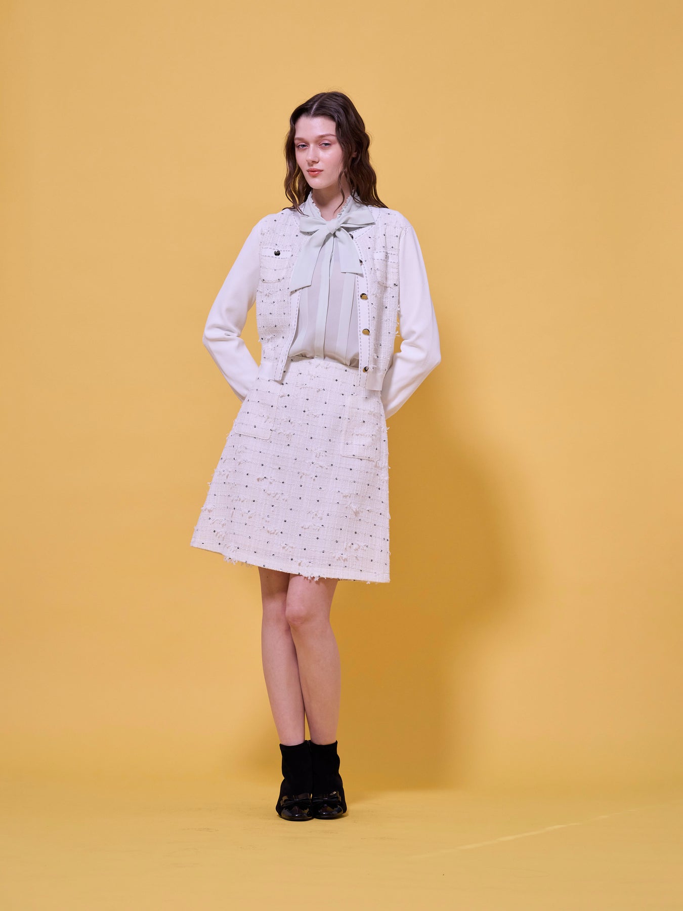 スカートにもパンツにも合わせやすく、プラスワンするだけで秋冬のスタイリングをリュクスに彩ってくれるアイテムです。