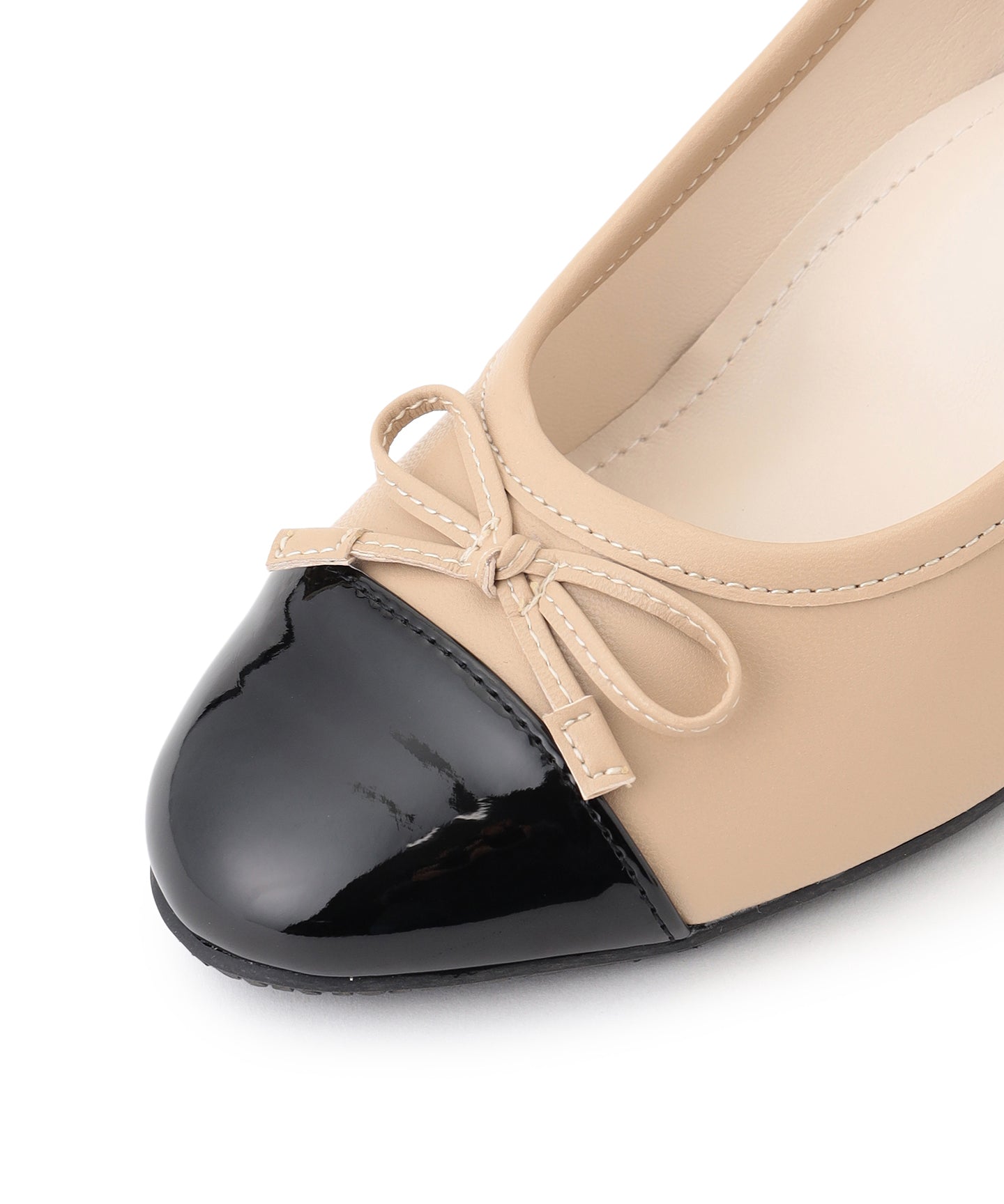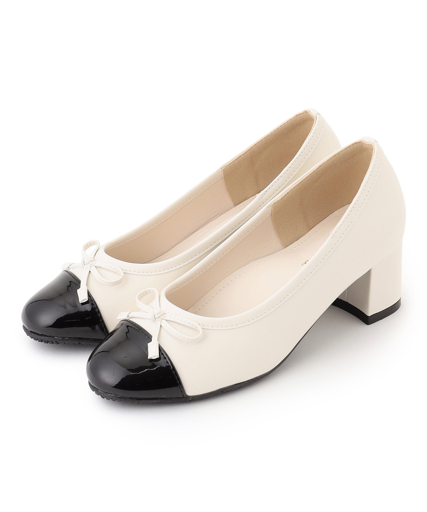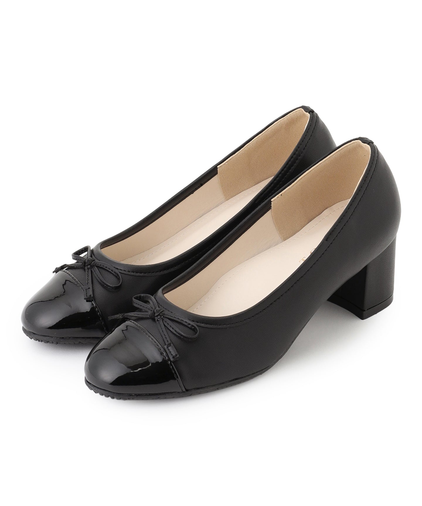 フロントの小さ目リボンが清楚でフェミニンな印象のの晴雨兼用レインパンプス。