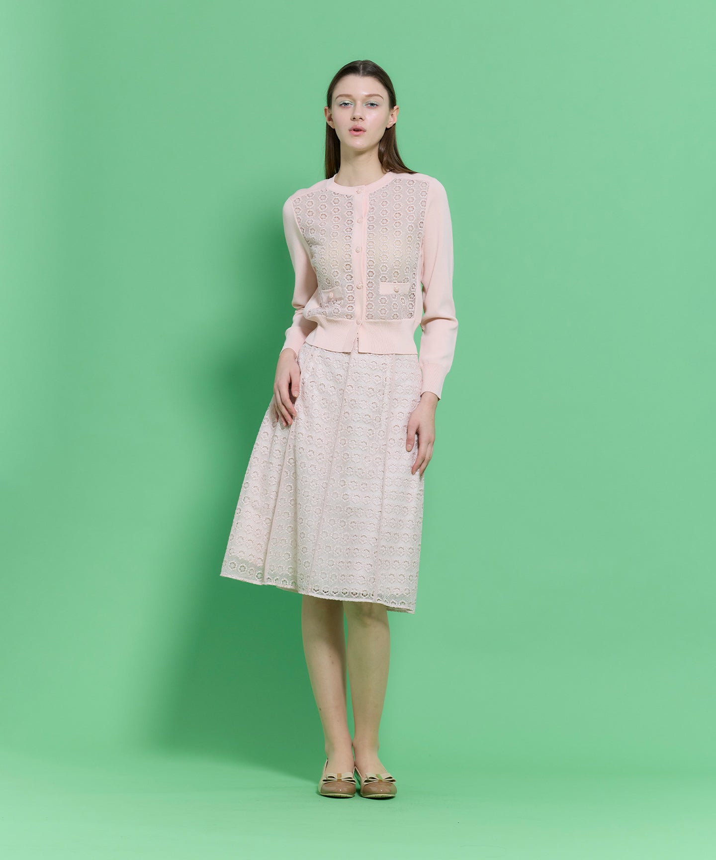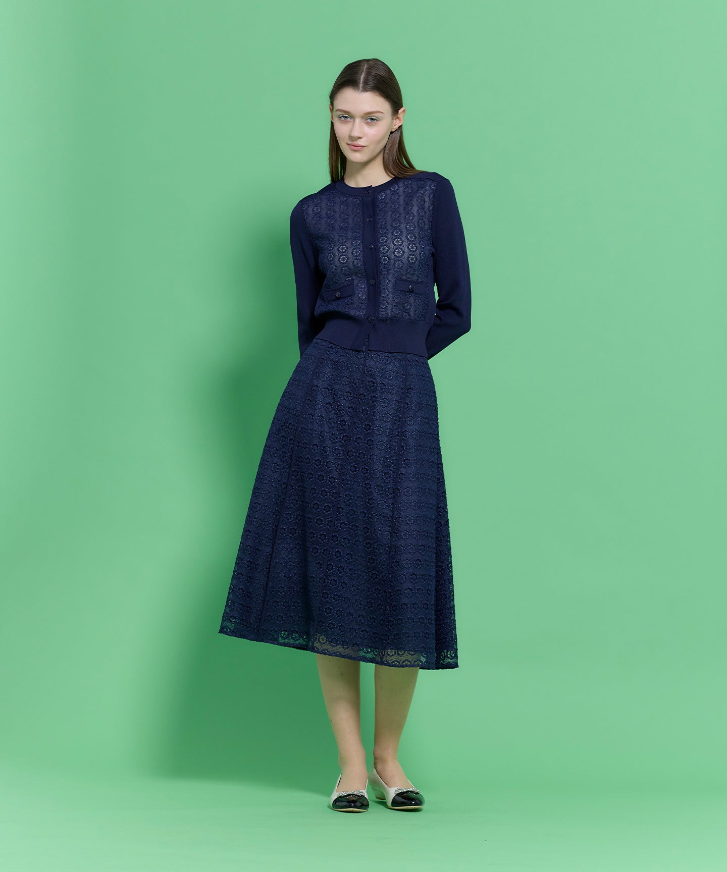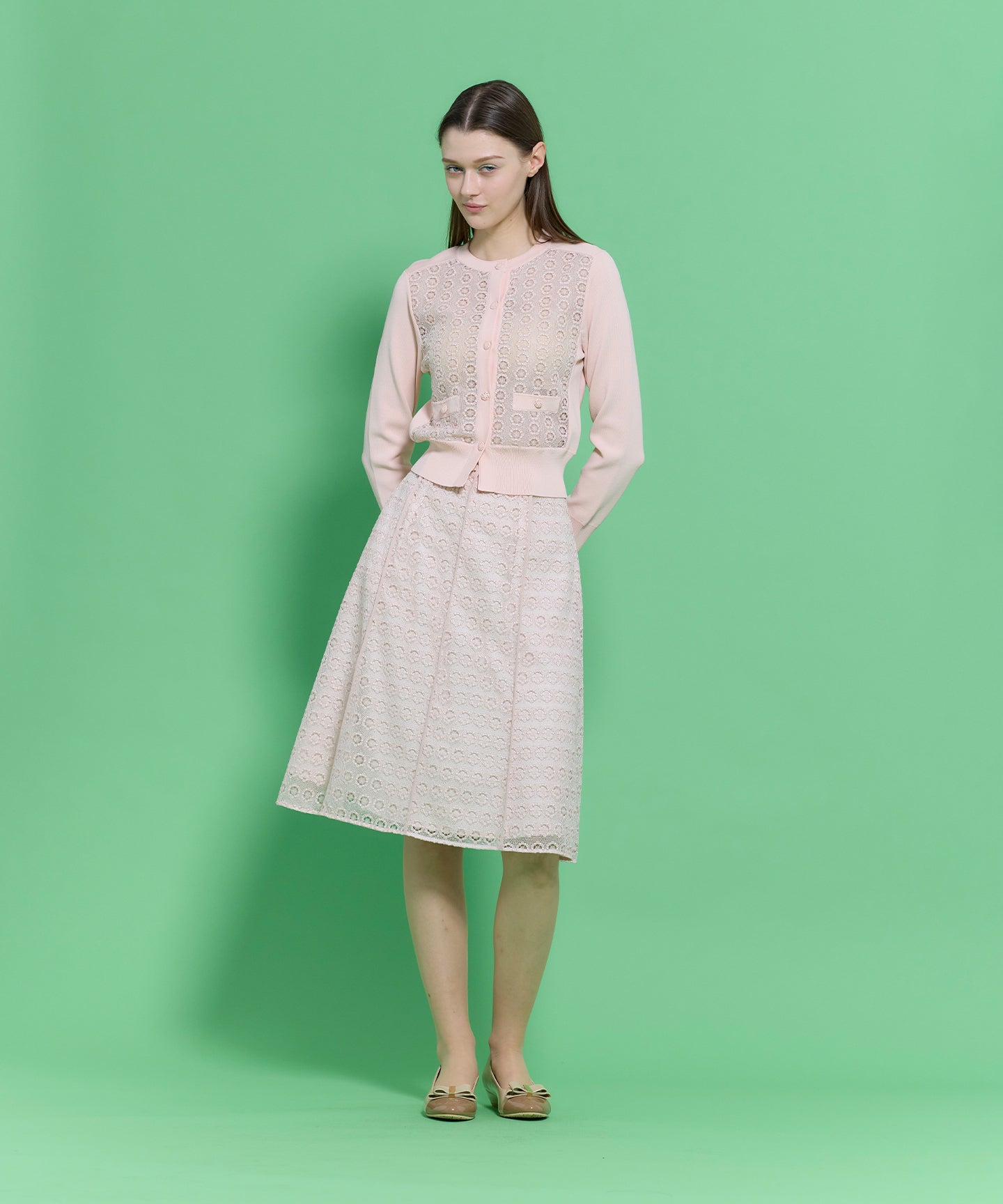通勤やお食事など幅広いシーンに活躍する、繊細な総レース素材を贅沢に使用したエレガントなスカート。 透け感のある軽やかなレースをすとんと落ちるシルエットに仕立てることで、華美になりすぎず、大人の洗練を感じさせる一枚に仕上げました。程よい抜け感とフェミニンさをプラスしてくれる、万能な一枚です。