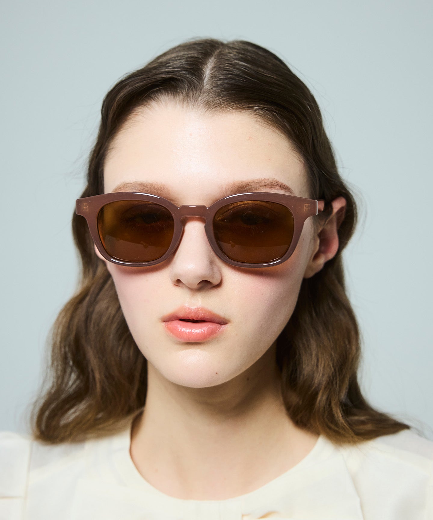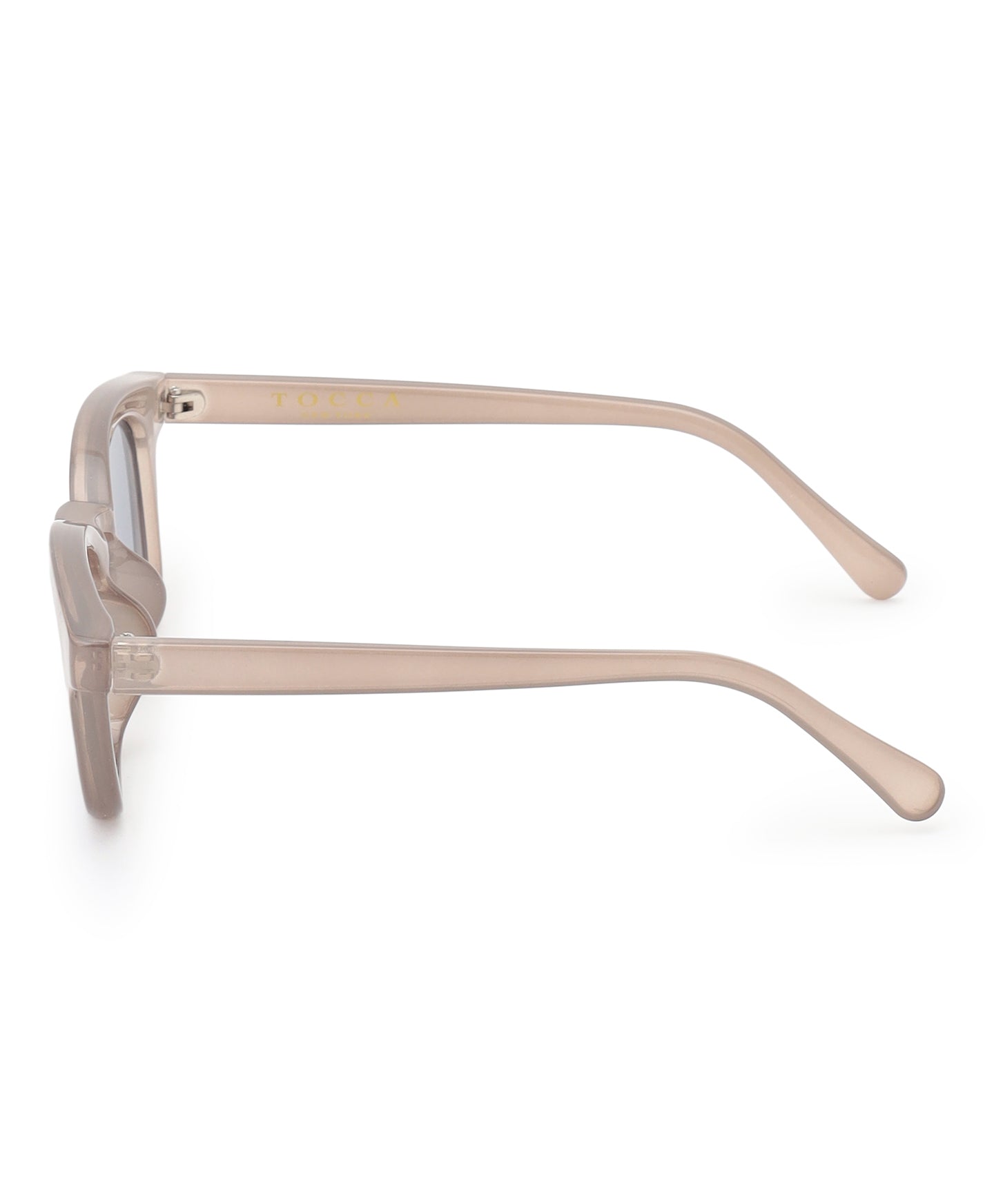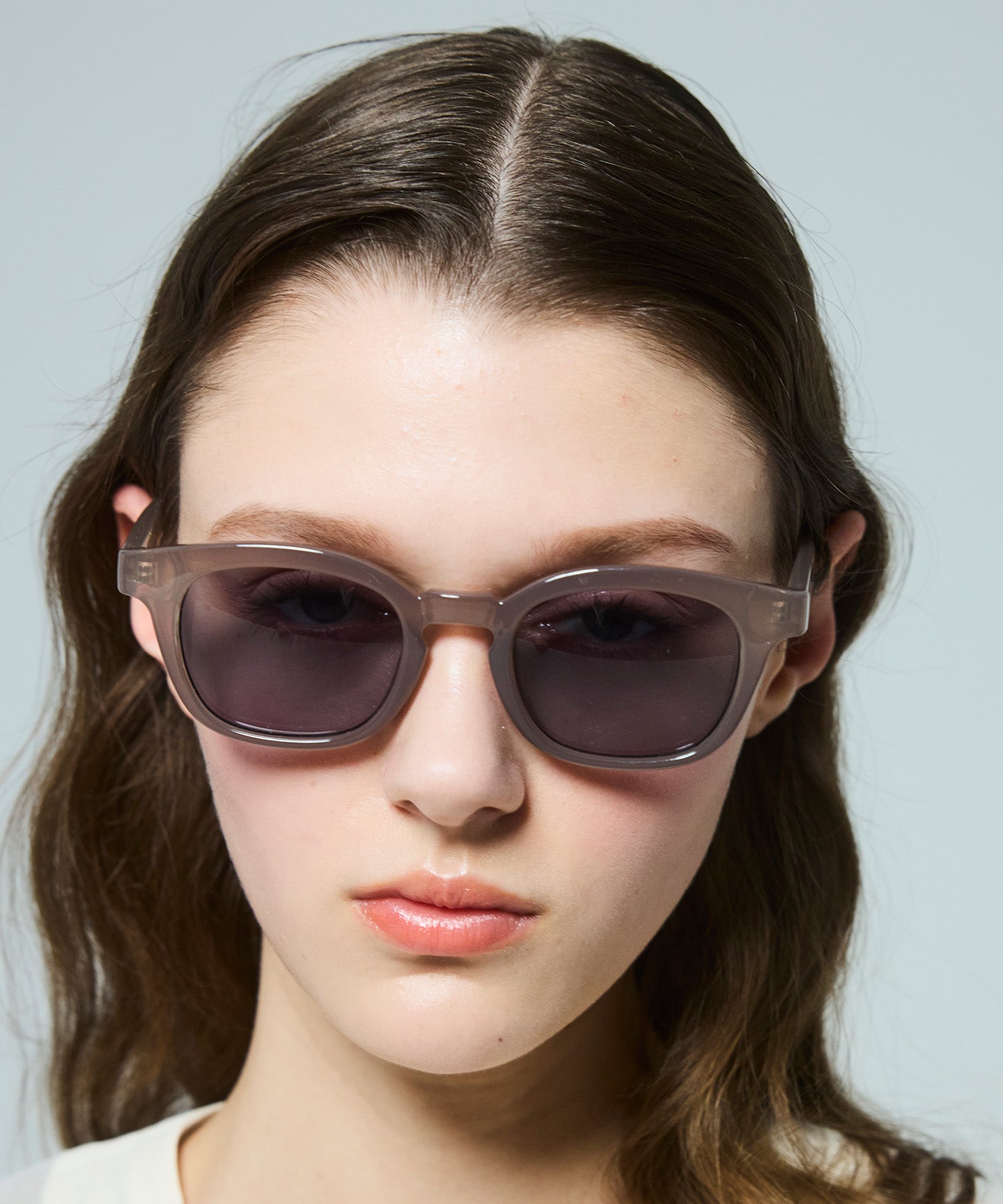 程よい太さと優しいミルキーカラーのフレームがフェイスラインを引き立てるモダンなデザインのサングラス。