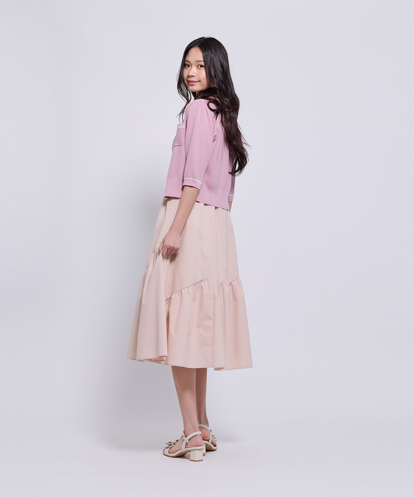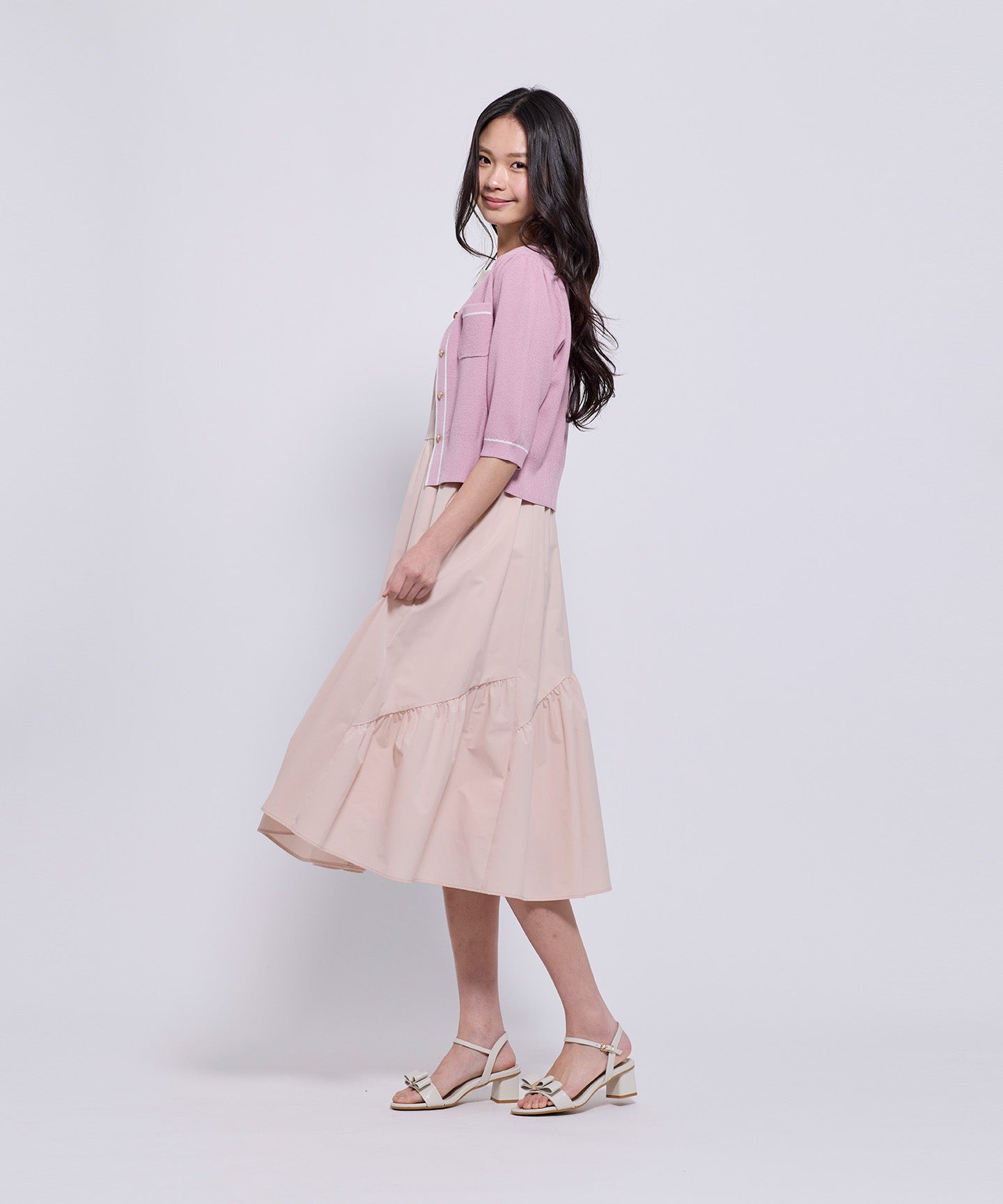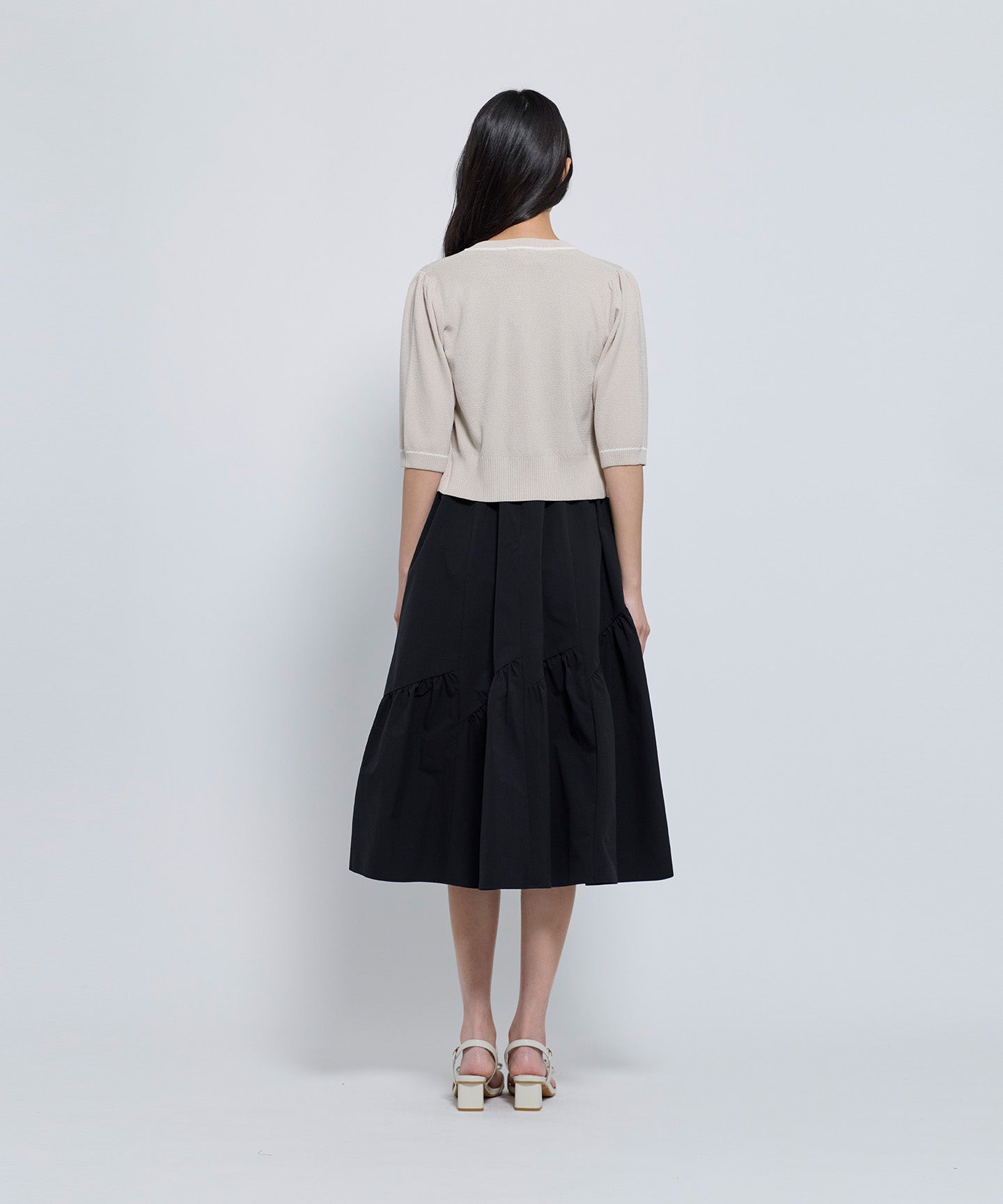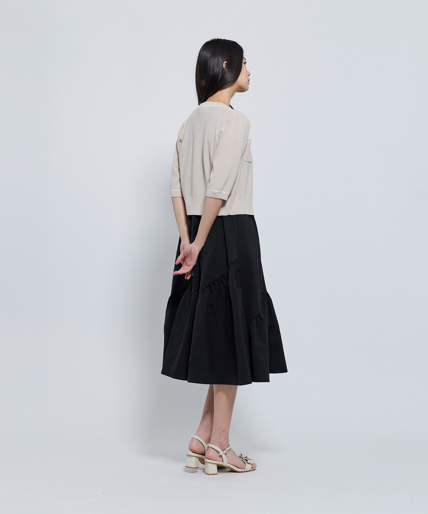 フロントとポケット部分には配色のトリミングを施し、きちんと感とデザイン性をプラスしています。コンパクトなシルエットと七分袖で、羽織りとしてもトップス感覚でも着用可能。きれいめからフェミニン、オフィスカジュアルまで幅広いシーンで活躍する1枚。