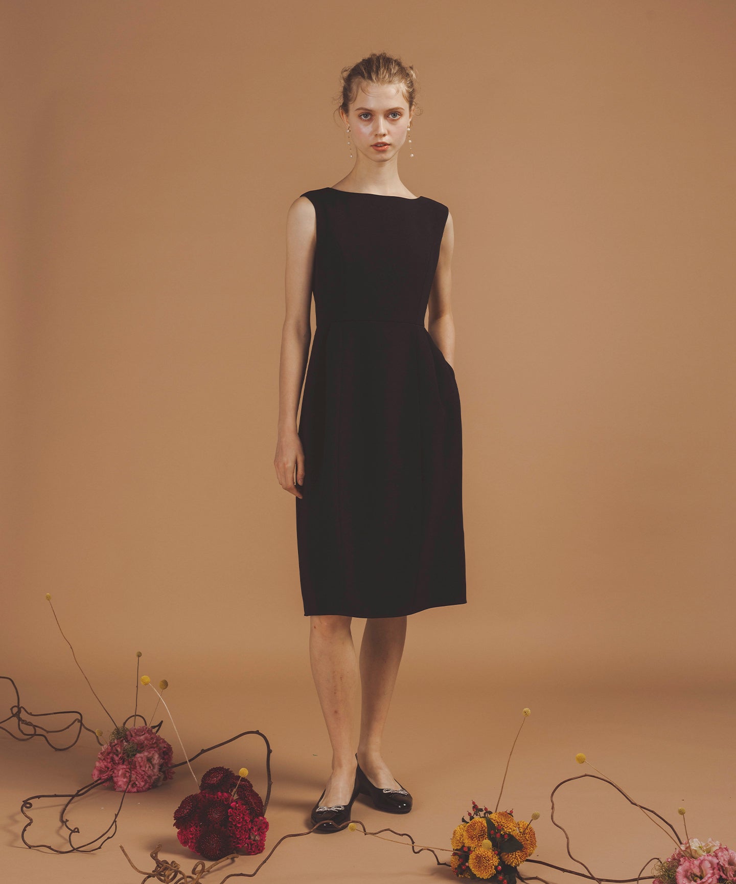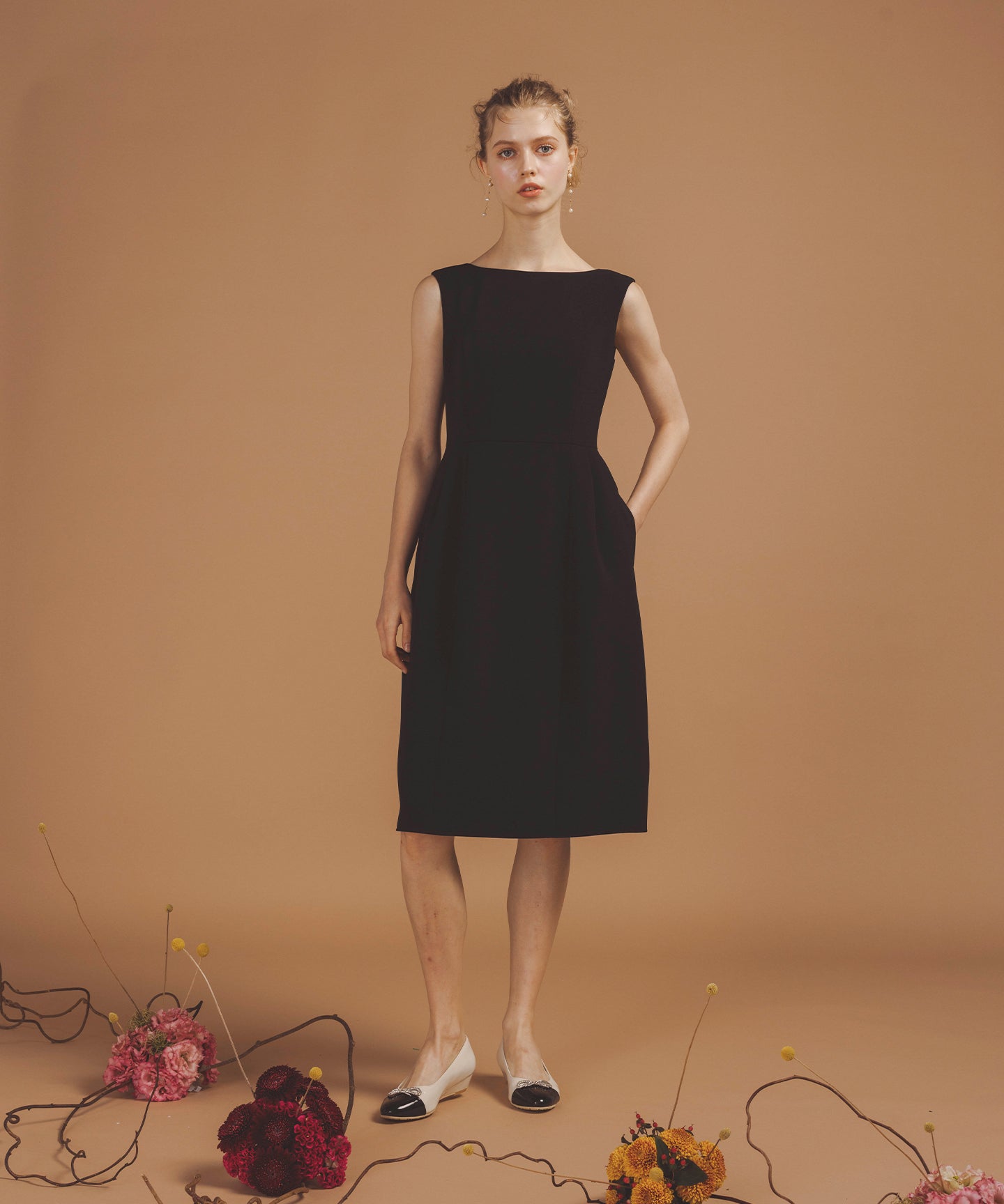 ウエスト部分にはタックが入り、自然と美しいラインを演出。フォーマルシーンやパーティー、お食事会など、特別な日にぴったりの1着です。