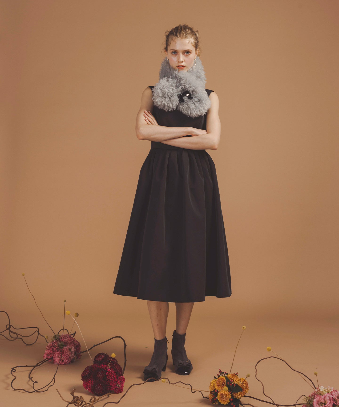 光沢感のある上質な生地を使用した、フィット&フレアのドレスです。スカート部分にはたっぷりとタックを入れることでドラマティックなシルエットに。ボートネックがデコルテを美しく見せ、シンプルながらも品のある雰囲気の1着です。