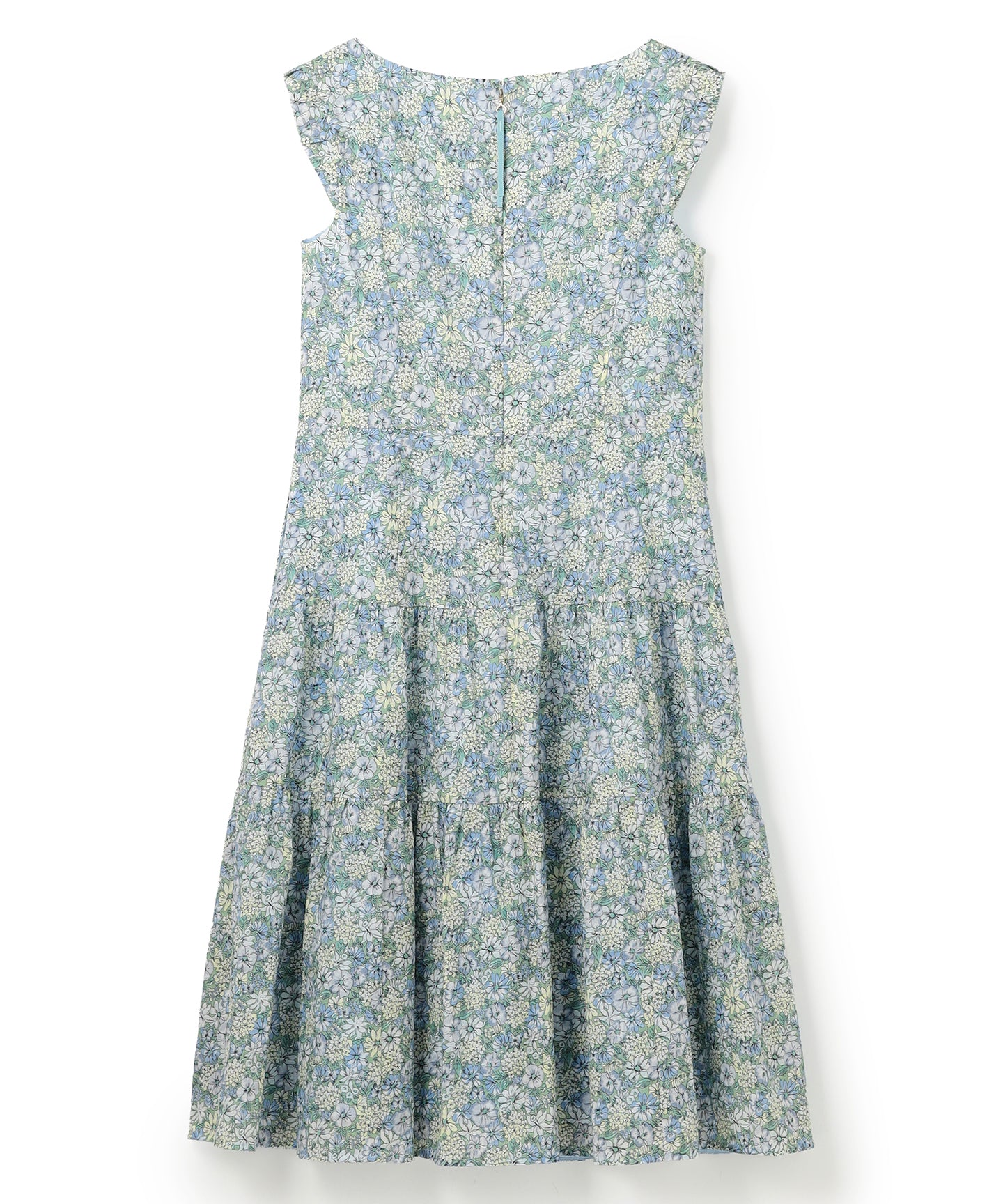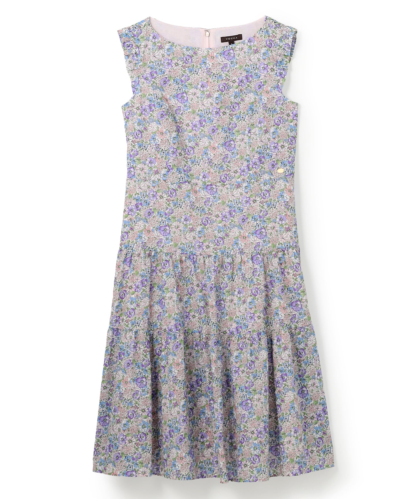 淡いカラーをベースにフラワープリントが優しく映えるドレス。繊細な花柄が全体に広がり、上品で女性らしい印象を演出します。ウエスト位置で切り替えたデザインが自然にスタイルアップを叶え、スカート部分は程よい分量感のティアードシルエットで軽やかな動きをプラス。 ノースリーブのすっきりとした肩周りと、詰まりすぎないネックラインが大人の抜け感を引き立てます。甘さを抑えたカラーリングと上品なシルエットで、デイリーからお出かけ、きれいめシーンまで幅広く活躍する一枚です。